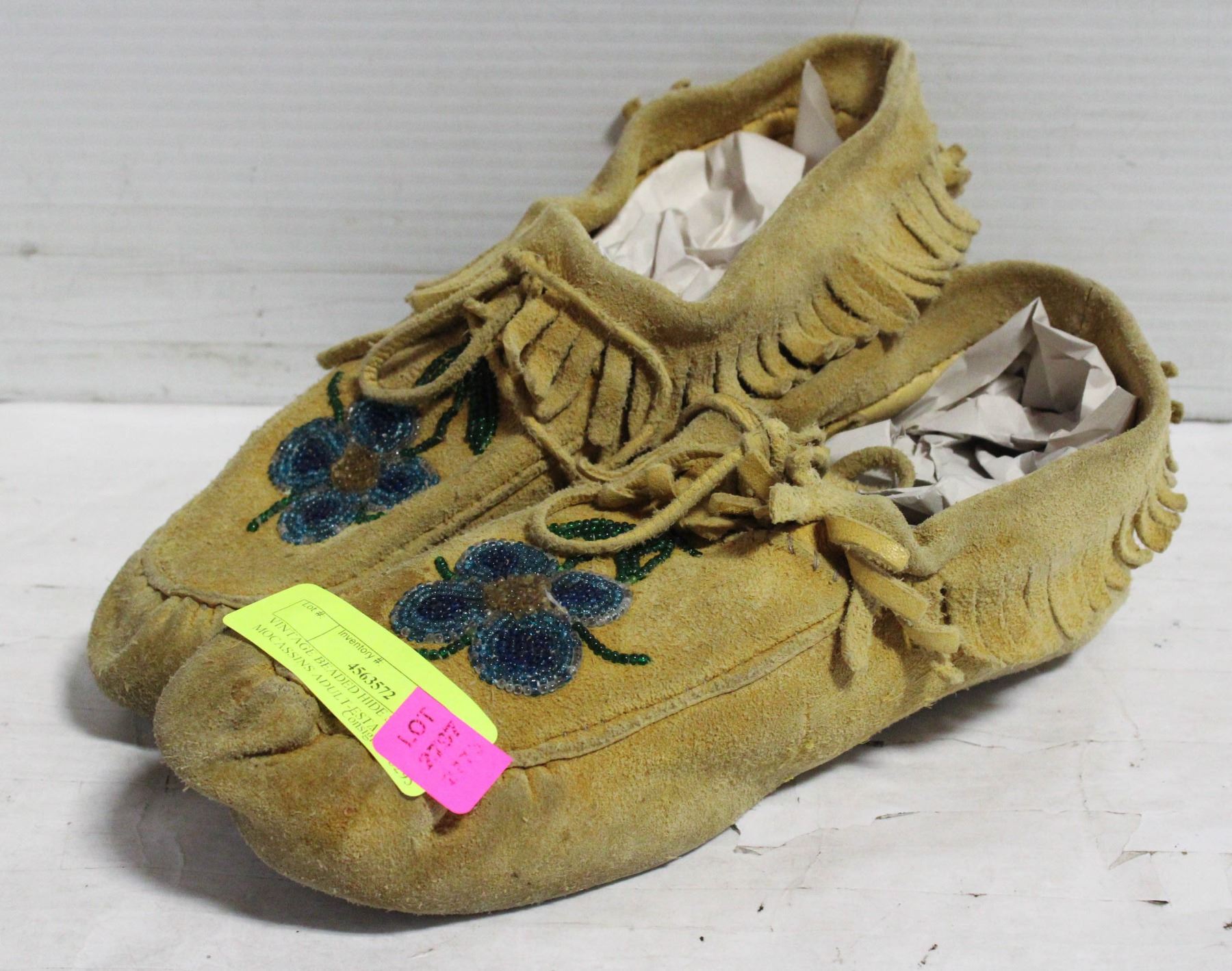 VINTAGE BEADED HIDE SIZE 9 MOCASSINS ADULT-ESTATE