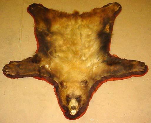 VINTAGE BEAR RUG - Approx. 57" long by 53" wide. There are some tears in the shoulder area and some claws missing. Will NOT ship to California, Alaska or International.