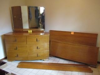 DRESSER, MIRROR, HEADBOARD, FOOTBOARD, RAILS, NIGHT STAND & CHEST OF DRAWERS