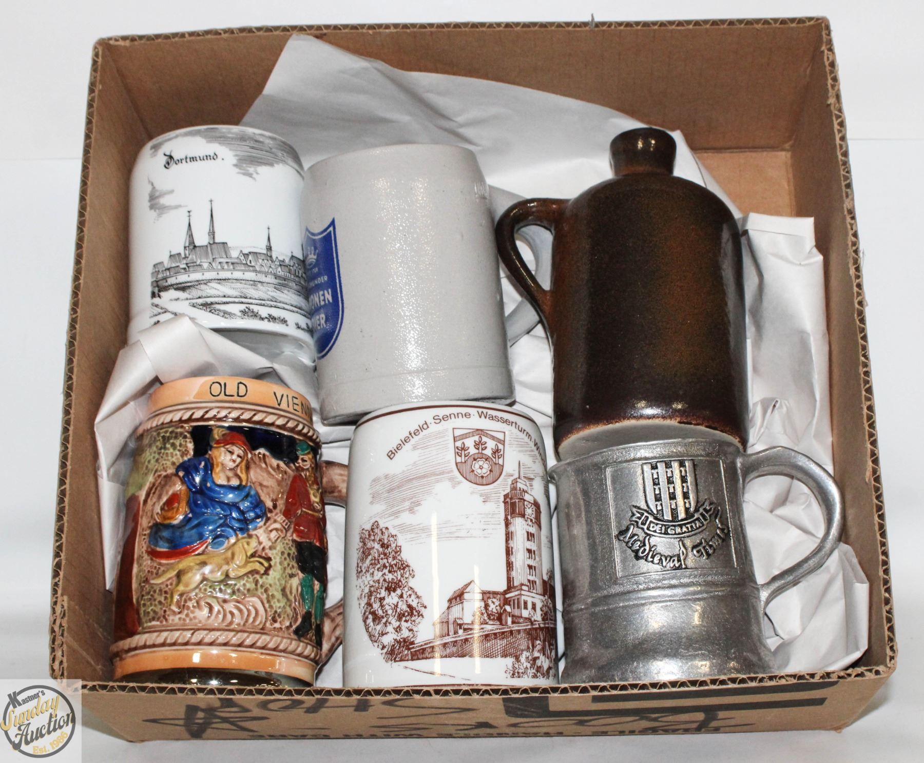 VINTAGE BEER STEINS- BOX LOT ASSORTED