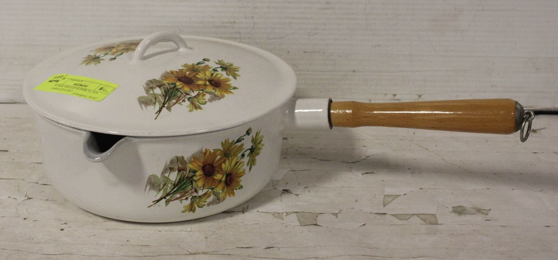 IRON SUNFLOWER DESIGN POT WITH POUR SPOUT AND LID 9"