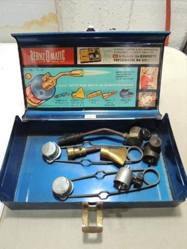 VINTAGE BERNZ-O-MATIC TORCH KIT #TX25. IN METAL CARRYING CASE. AS SHOWN. VIEW PICTURE FOR DETAIL.