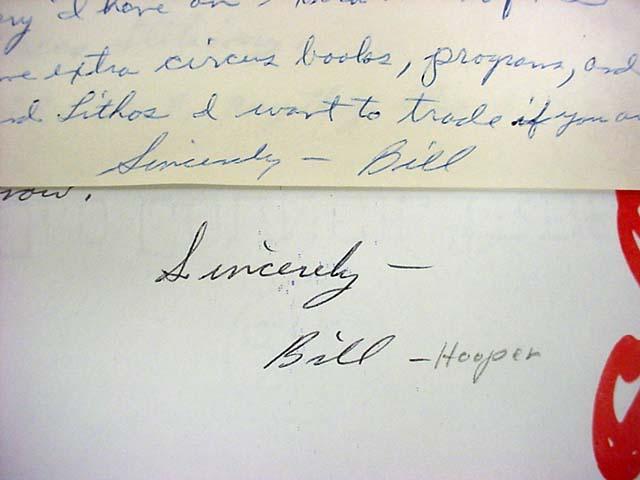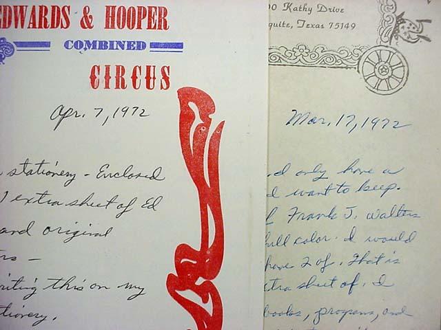 VINTAGE BILL HOOPER HANDWRITTEN LETTER ON CIRCUS LETTER HEAD - On Williams, Edwards and Hooper Combined Circus Letter head.