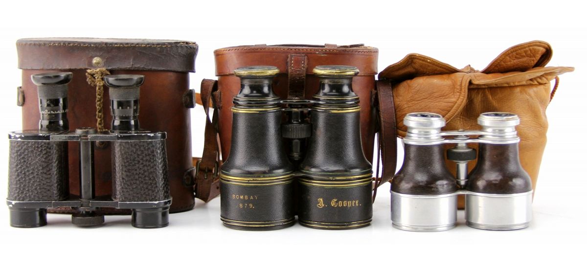 VINTAGE BINOCULARS LOT Colmont, J. Sewill, and Ross. Country: US Condition: Very good.