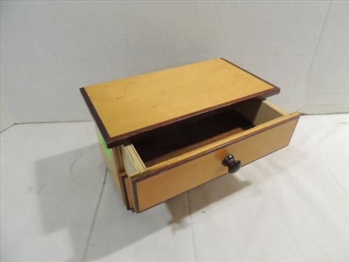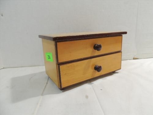 VINTAGE BIRCH WOOD TWO DRAWER DOLL DRESSER. VERY NICE CONSTRUCTION. AS SHOWN. VIEW PICTUR EFOR DETAIL.