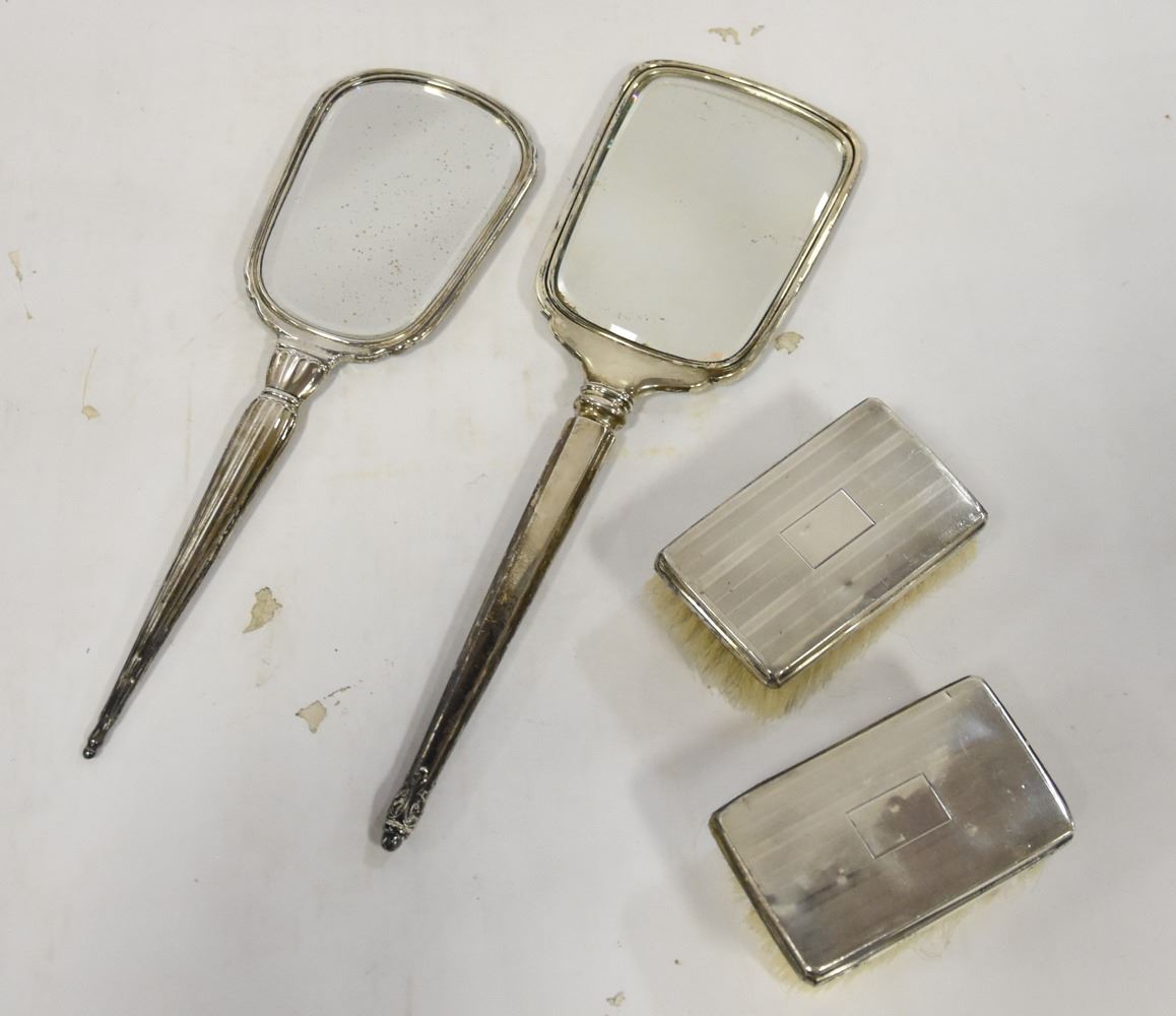 2 HAND MIRRORS AND 2 BRUSHES. ALL PIECES MARKED "BIRKS STERLING". COMPOSED SET