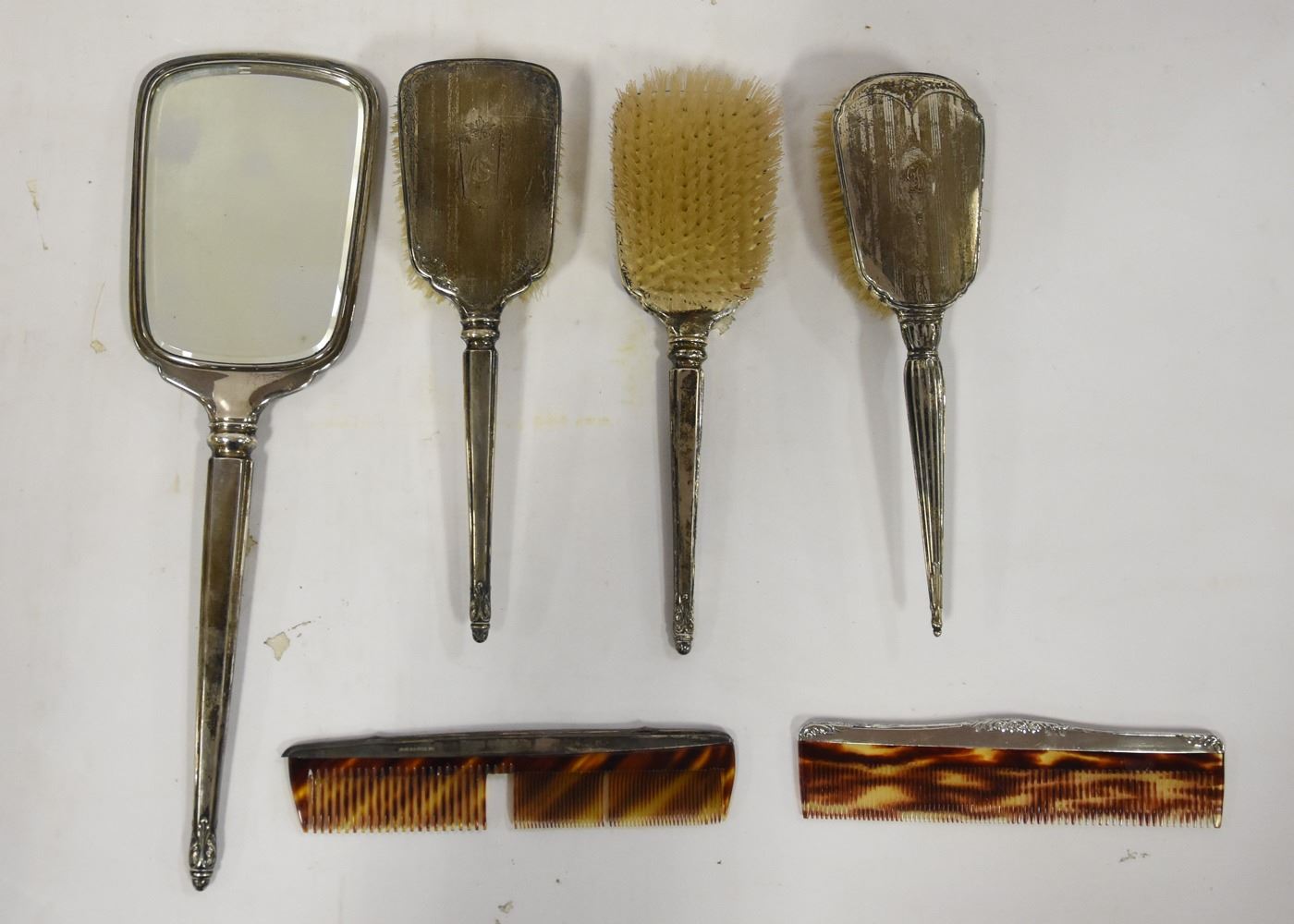 INCLUDES HAND MIRROR, 3 BRUSHES AND COMB. ALL PIECES MARKED "BIRKS STERLING"