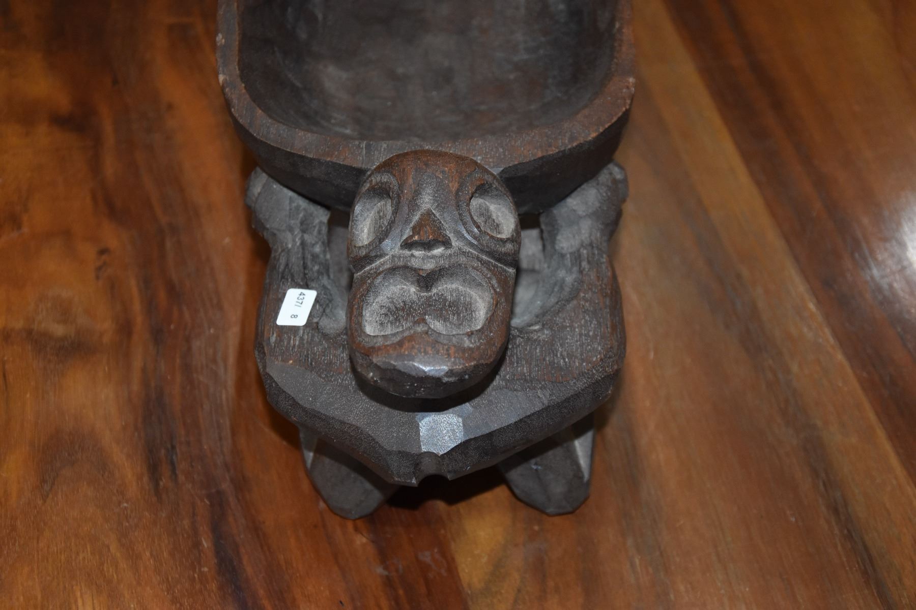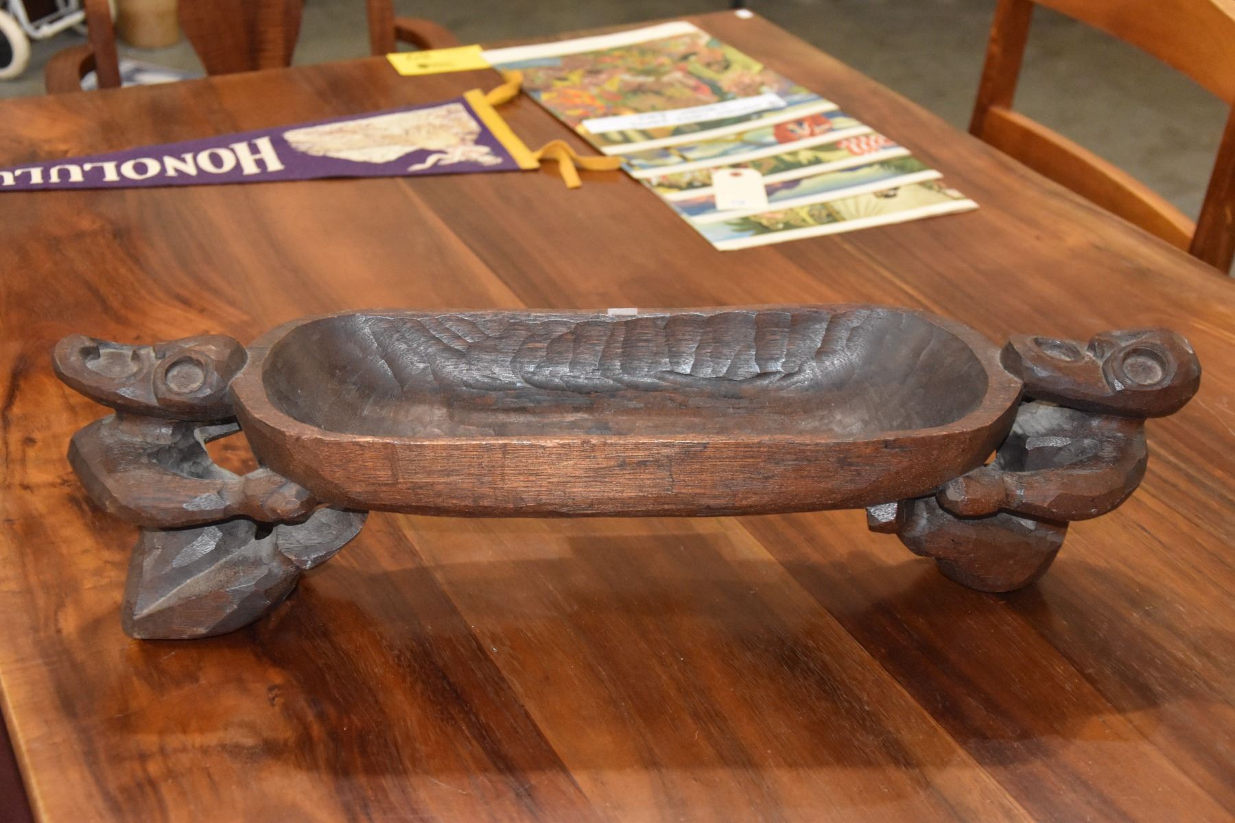 VINTAGE BISHOP MUSEUM SHOP HAND CARVED REPLICA OF DOUBLE HEADED LONG CHIEF'S BOWL (22" X 6" X 6")