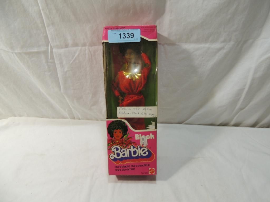 VINTAGE BLACK BARBIE IN BOX. SHES BLACK SHES BEAUTIFUL SHES DYNAMITE. AS SHOWN SEE PHOTO FOR MORE DETAILS.