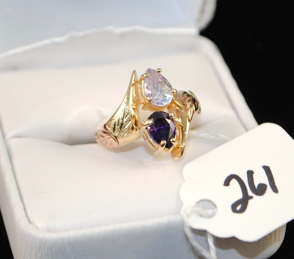 VINTAGE BLACK HILLS GOLD RING SET WITH TWO AMETHST GEMSTONES