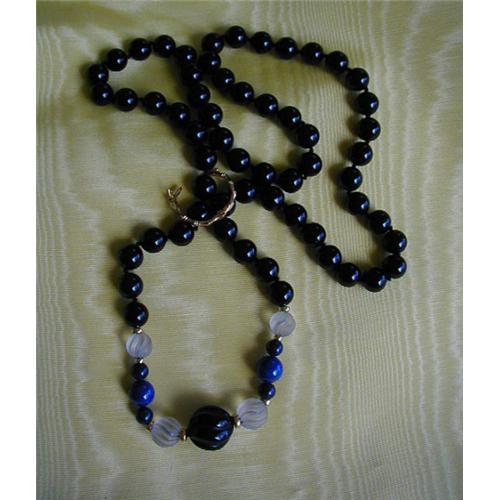 <tr><td>Title:VINTAGE BLACK ONYX /LAPIS 14MM BEAD NECK.</td></tr>