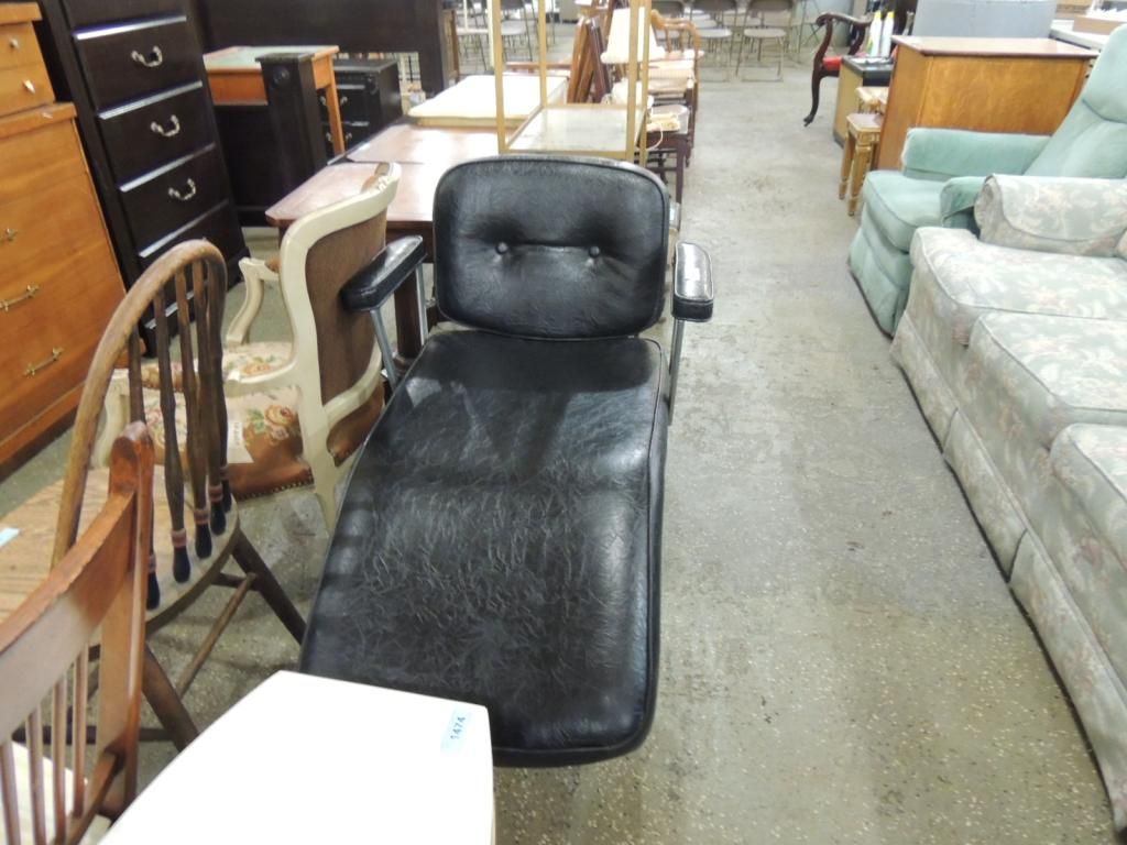 VINTAGE UNIQUE RECLINGING CHAIR. AS SHOWN. SEE PHOTO FOR MORE DETAILS.