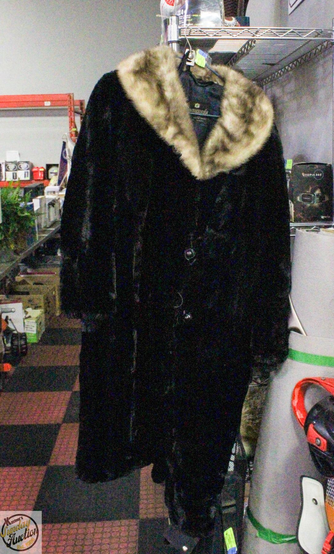 VINTAGE BLACK SHEARED BEAVER FUR COAT WITH MINK