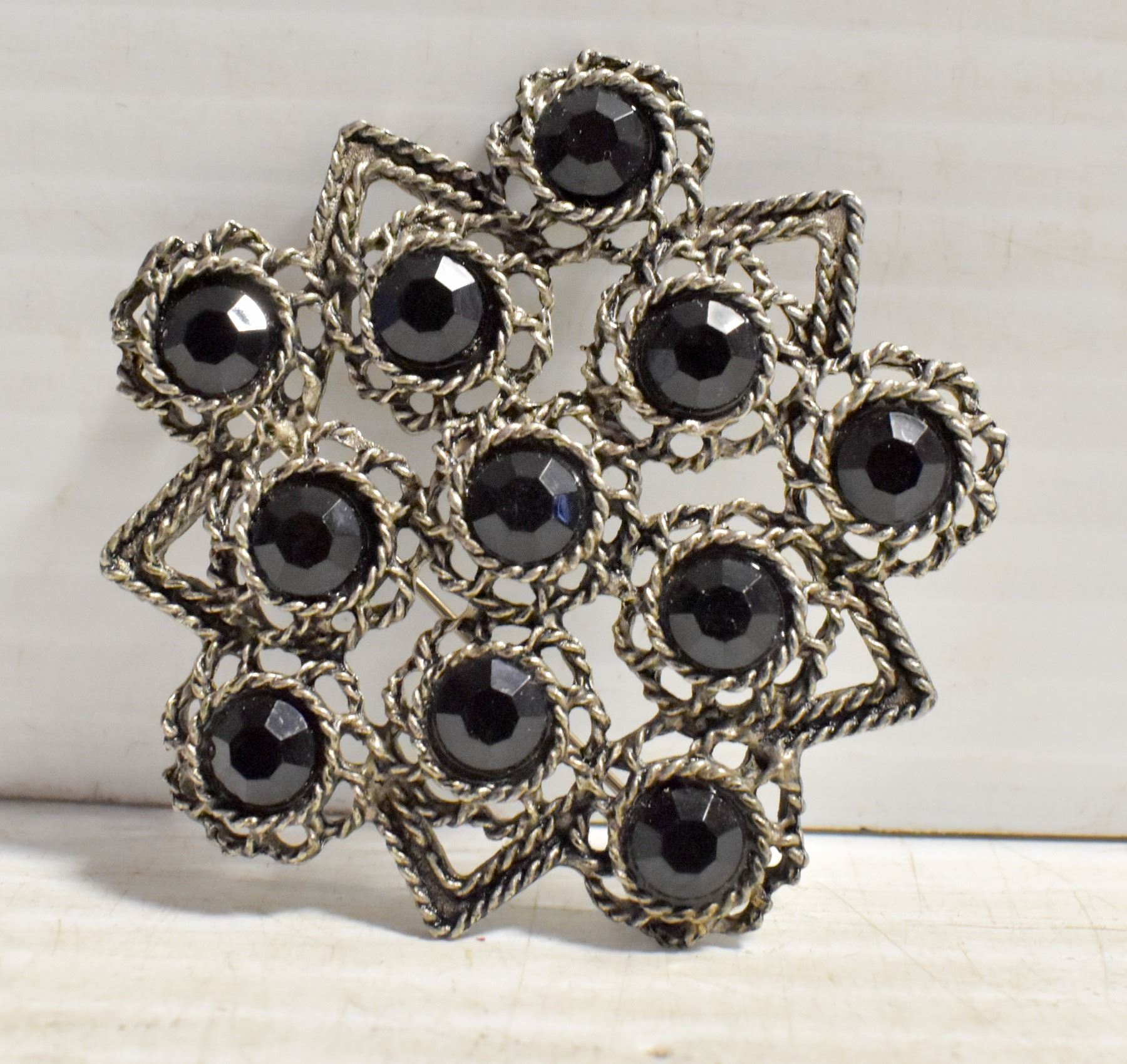 VINTAGE BLACK STONED BROOCH