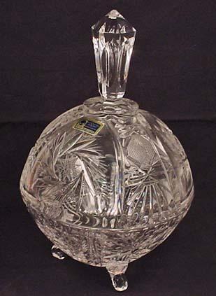 VINTAGE BLEIKRISTALL CRYSTAL CANDY DISH W/ LID - Made in German Democratic Republic (East Germany). Approx. 6" diameter and 10" tall.