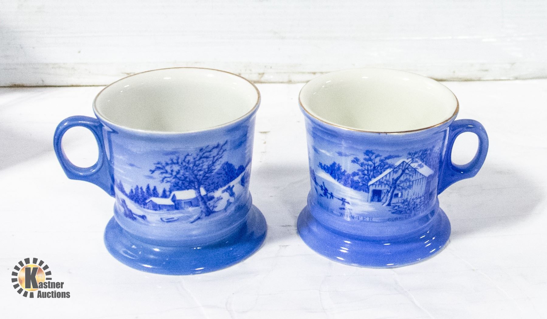 VINTAGE BLUE AND WHITE LARGE COFFEE MUGS