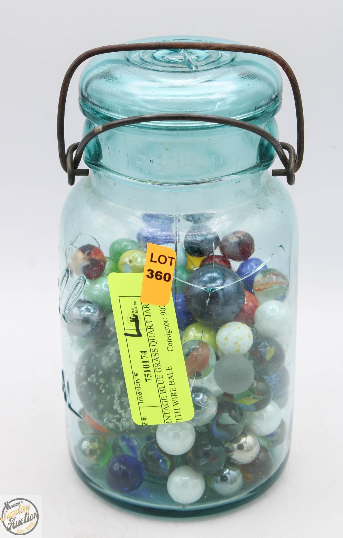 CLAMP WITH COLLECTION OF VINTAGE MARBLES *JAR IS CRACKED***ALL ITEMS MUST BE REMOVED BY 5PM SATURDAY, JUNE 7TH, 2025. ALL REMAINING ITEMS WILL BE SUBJECT TO A $6.00 PER DAY STORAGE CHARGE. ANY ITEMS REMAINING AFTER MONDAY, JUNE 23RD, 2025 WILL BE CONSIDERED FORFEITED. NO REFUNDS WILL BE ISSUED FOR FORFEITED ITEMS.** TO SCHEDULE A PICK UP APPOINTMENT CLICK HERE