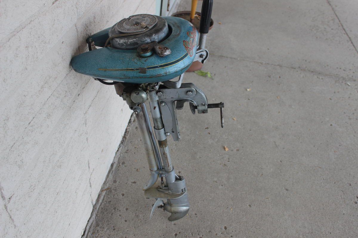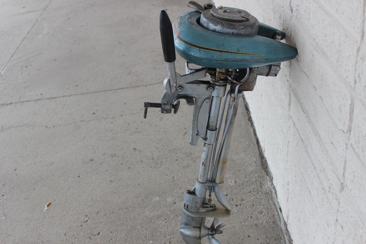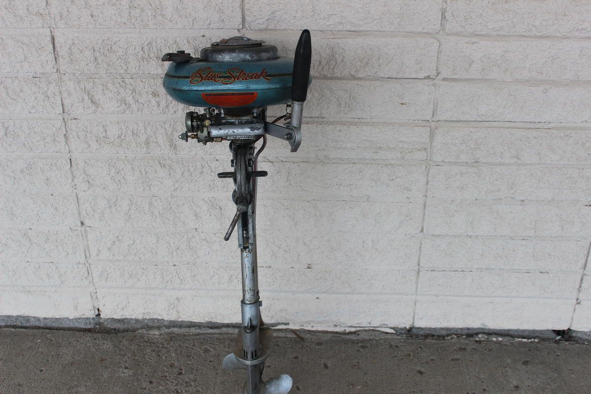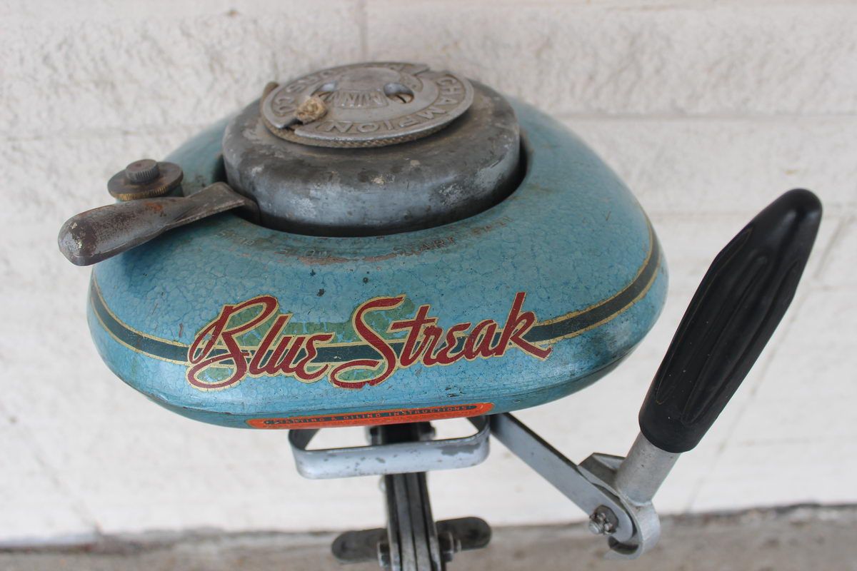 VINTAGE BLUE STREAK BOAT MOTOR BY CHAMPION MOTORS WORKS GREAT