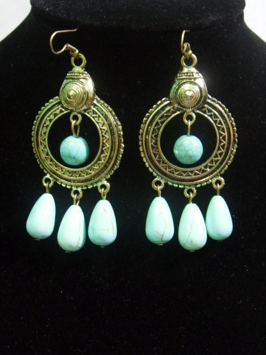 VINTAGE BLUE TURQUOISE DANGLING EARRINGS;METAL-BRASS;ST **|**|** VINTAGE BLUE TURQUOISE DANGLING EARRINGS;METAL-BRASS;STONE-BLUE TURQUOISE ; MSRP: $75