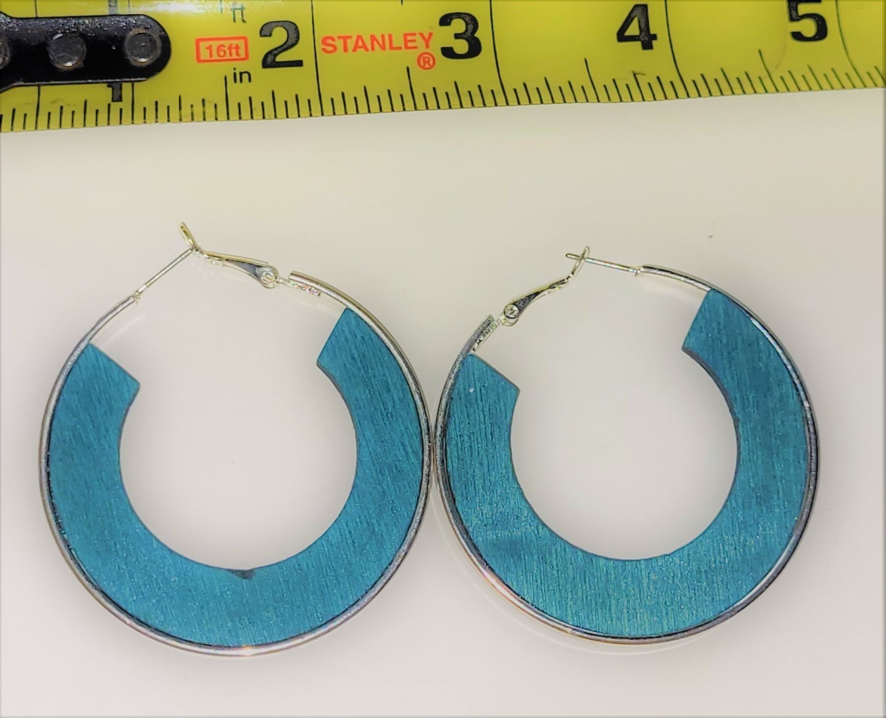 VINTAGE BLUE WOOD HOOP EARRINGS