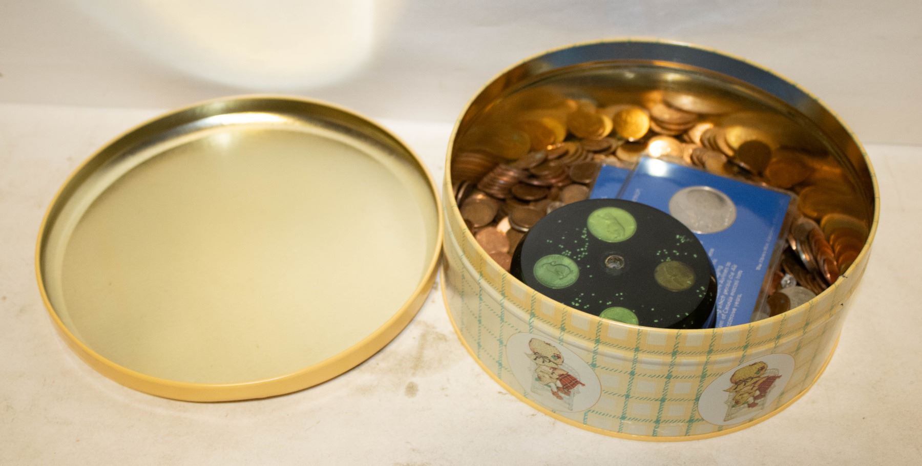 VINTAGE BONNIE BONNETS TIN FULL OF COINS