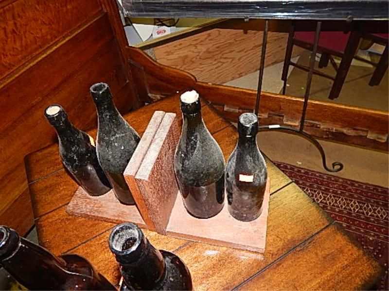 VINTAGE BOTTLES BOOK ENDS - 2 & 2 OTHER BOTTLES