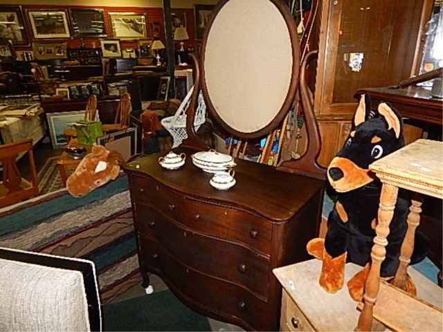 VINTAGE BOW FRONT DRESSOR WITH PLACE FOR MIRROR was broken in transport