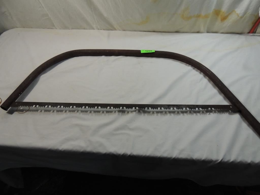 VINTAGE BOW SAW METAL BOW SAW AS SHOWN SEE PHOTO FOR MORE DETAILS.