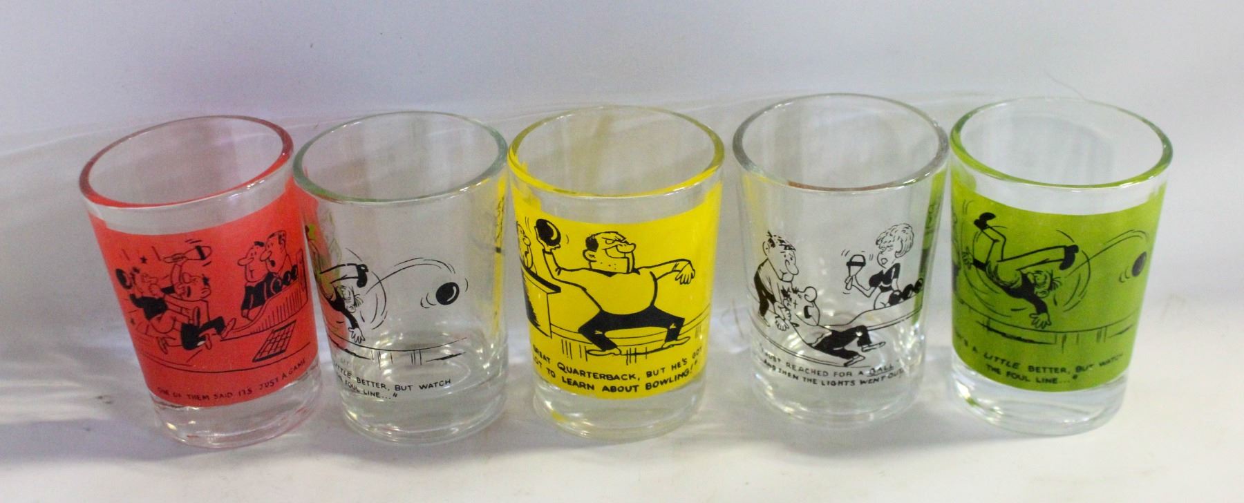 VINTAGE "BOWLING" NOVELTY SHOT GLASSES (5)