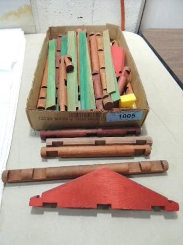 VINTAGE BOX LOT ASSORTED PIECES OF LINCOLN LOGS. AS SHOWN. VIEW PICTURE FOR DETAIL.