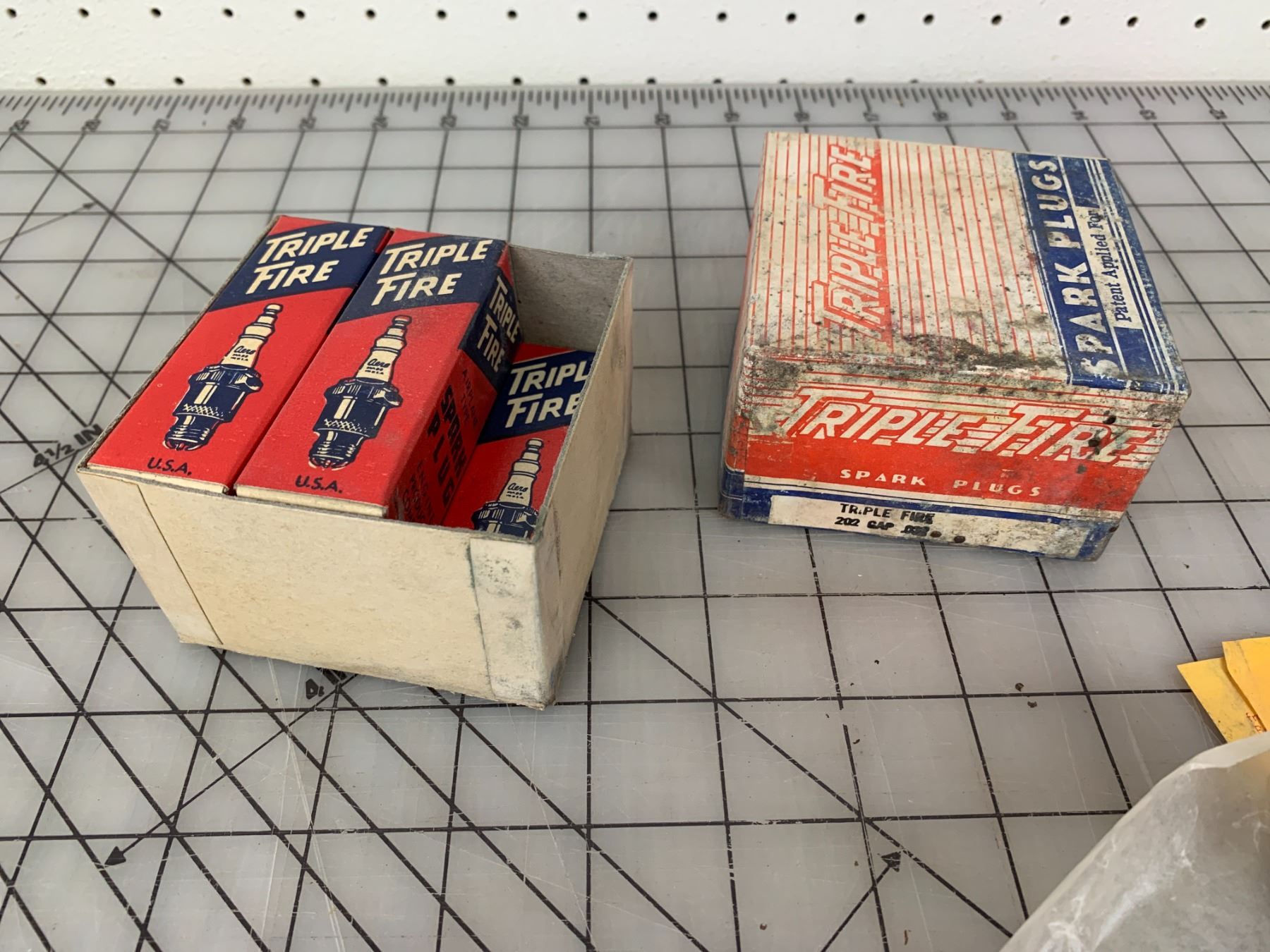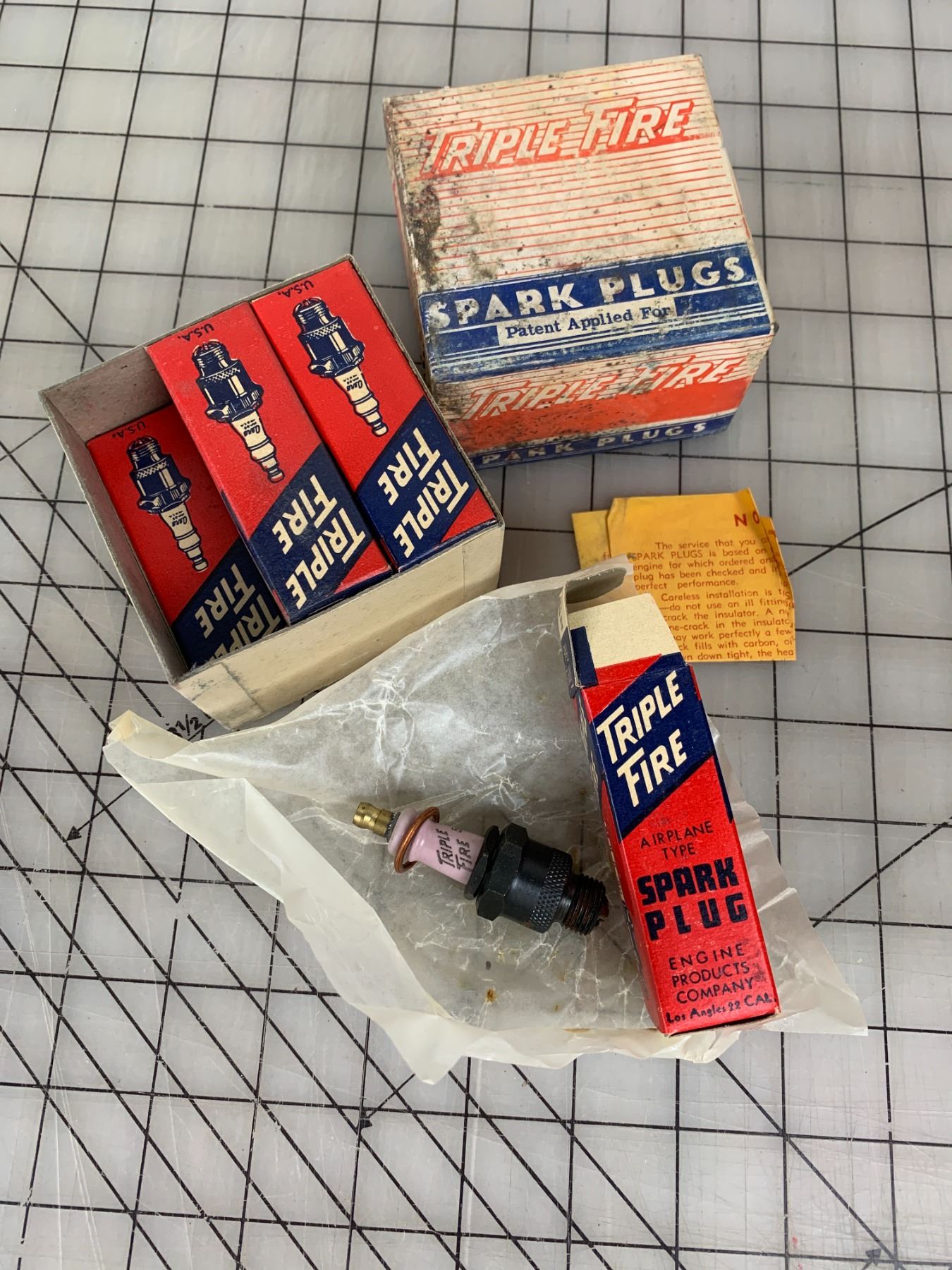 VINTAGE BOX OF AIRPLANE TYPE TRIPLE FIRE SPARK PLUGS