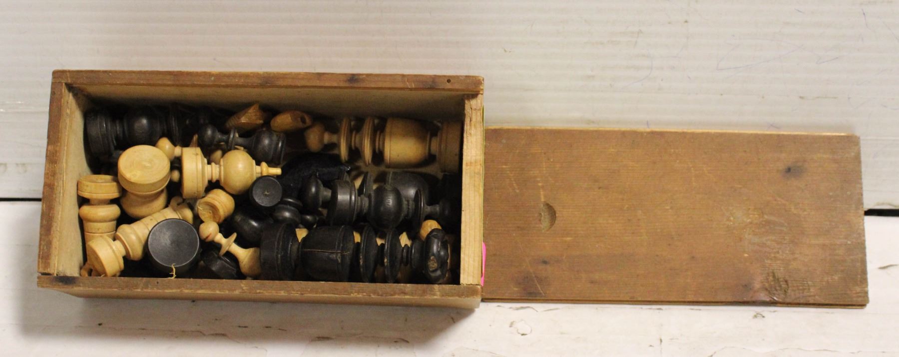 VINTAGE BOX OF WOODEN CHESS PIECES
