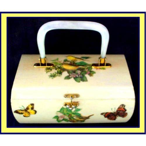 <tr><td>Title:VINTAGE BOX PURSE RAISED BIRDS BUTTERFLIES</td></tr>