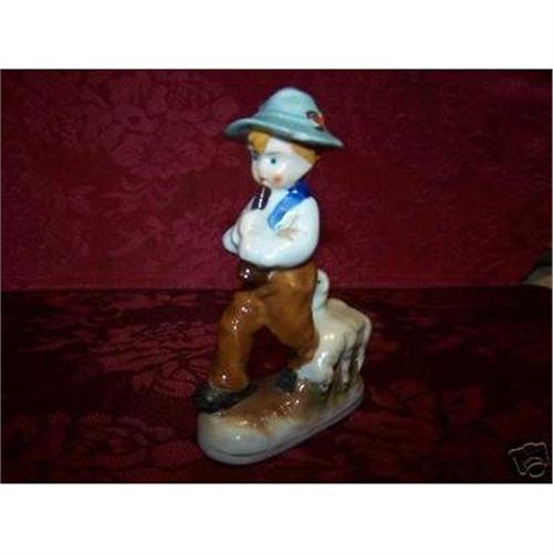Vintage Little Boy with Flute & Sheep - Stamped on the Bottom - made in "Occupied Japan.  2 small chips on brim of hat.  This is a very old piece.  Piece measures approximately 4 1/2" high x 2 1/2 base.  This would make a nice addition to anyone's Occupied Japan Collection!.