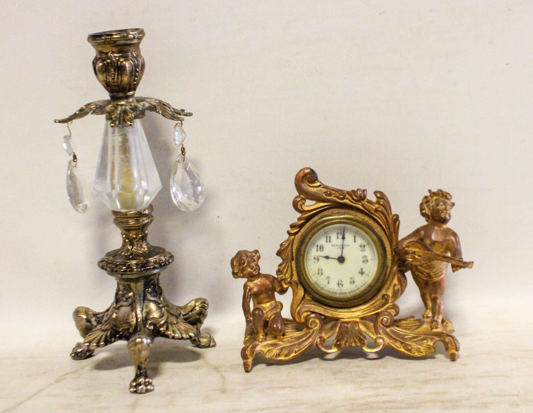 VINTAGE BRASS CLOCK + CANDLE HOLDER