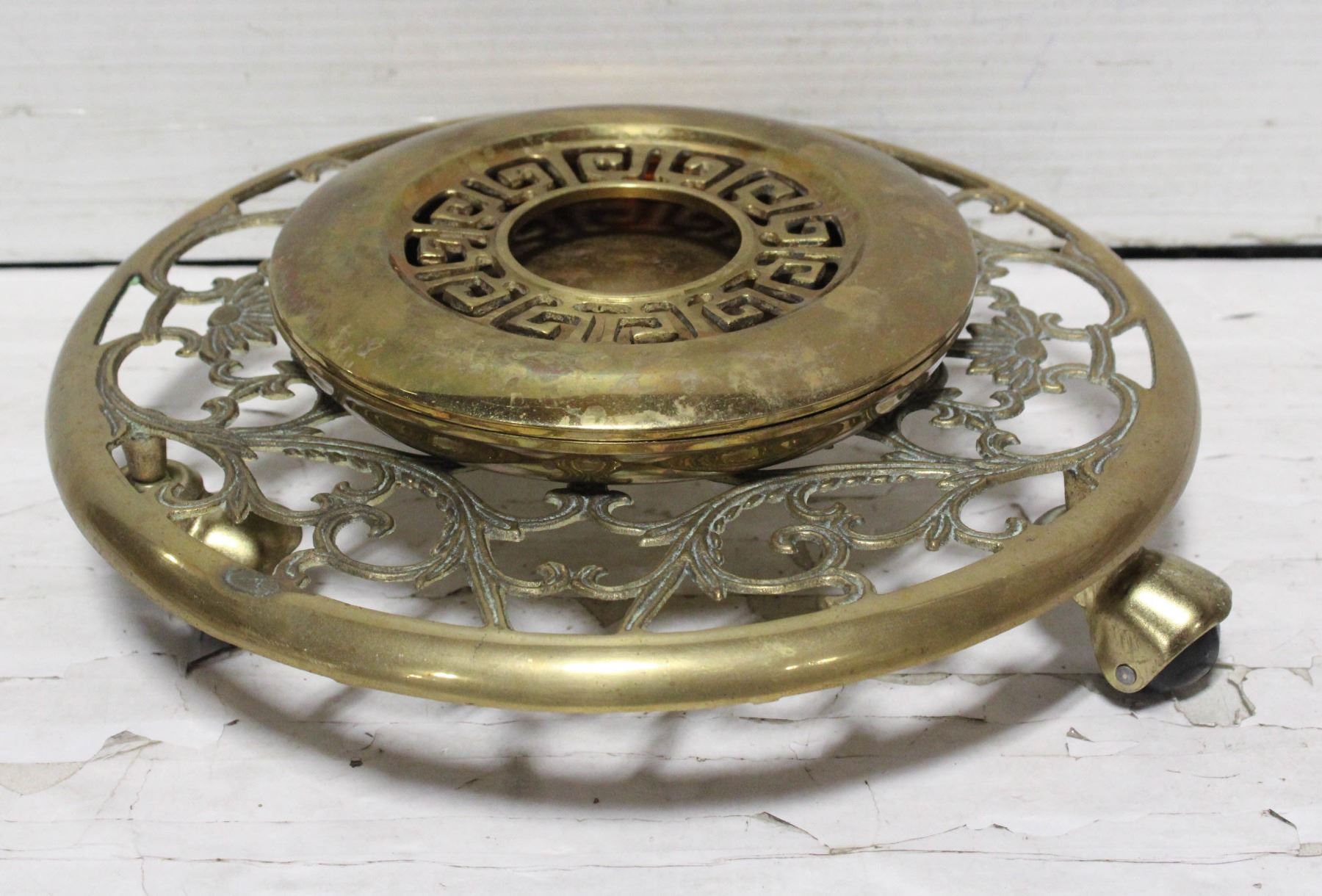 VINTAGE BRASS PLANT CADDY & INCENSE BURNER