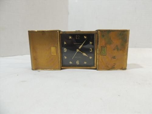 VINTAGE BRASS REMEMBRANCE 7 JEWEL TRAVEL ALARM CLOCK. WINDUP AND WORKS. AS SHOWN. VIEW PICTURE FOR DETAIL.