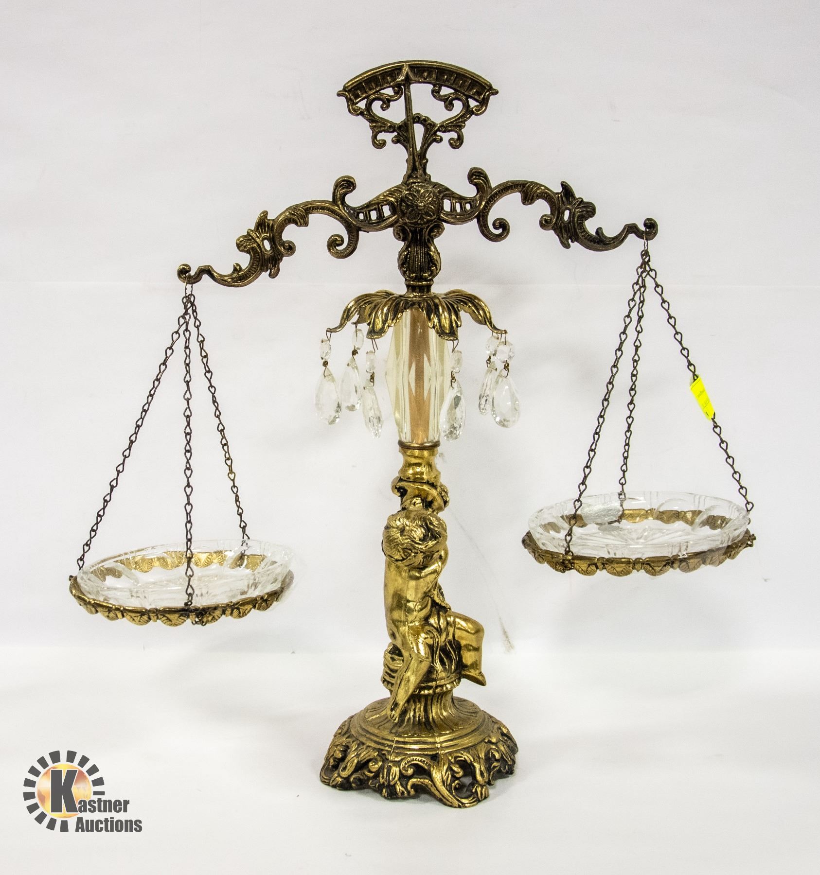 BALANCING SCALE WITH GENUINE LEAD CRYSTAL MADE IN EAST GERMANY (LABELLED) **ALL ITEMS MUST BE REMOVED BY 5PM SATURDAY, DECEMBER 16TH 2023. ALL REMAINING ITEMS WILL BE SUBJECT TO A $6.00 PER DAY STORAGE CHARGE. ANY ITEMS REMAINING AFTER TUESDAY, JANUARY 2ND 2023 WILL BE CONSIDERED FORFEITED. NO REFUNDS WILL BE ISSUED FOR FORFEITED ITEMS. TO SCHEDULE A PICK UP APPOINTMENT CLICK HERE