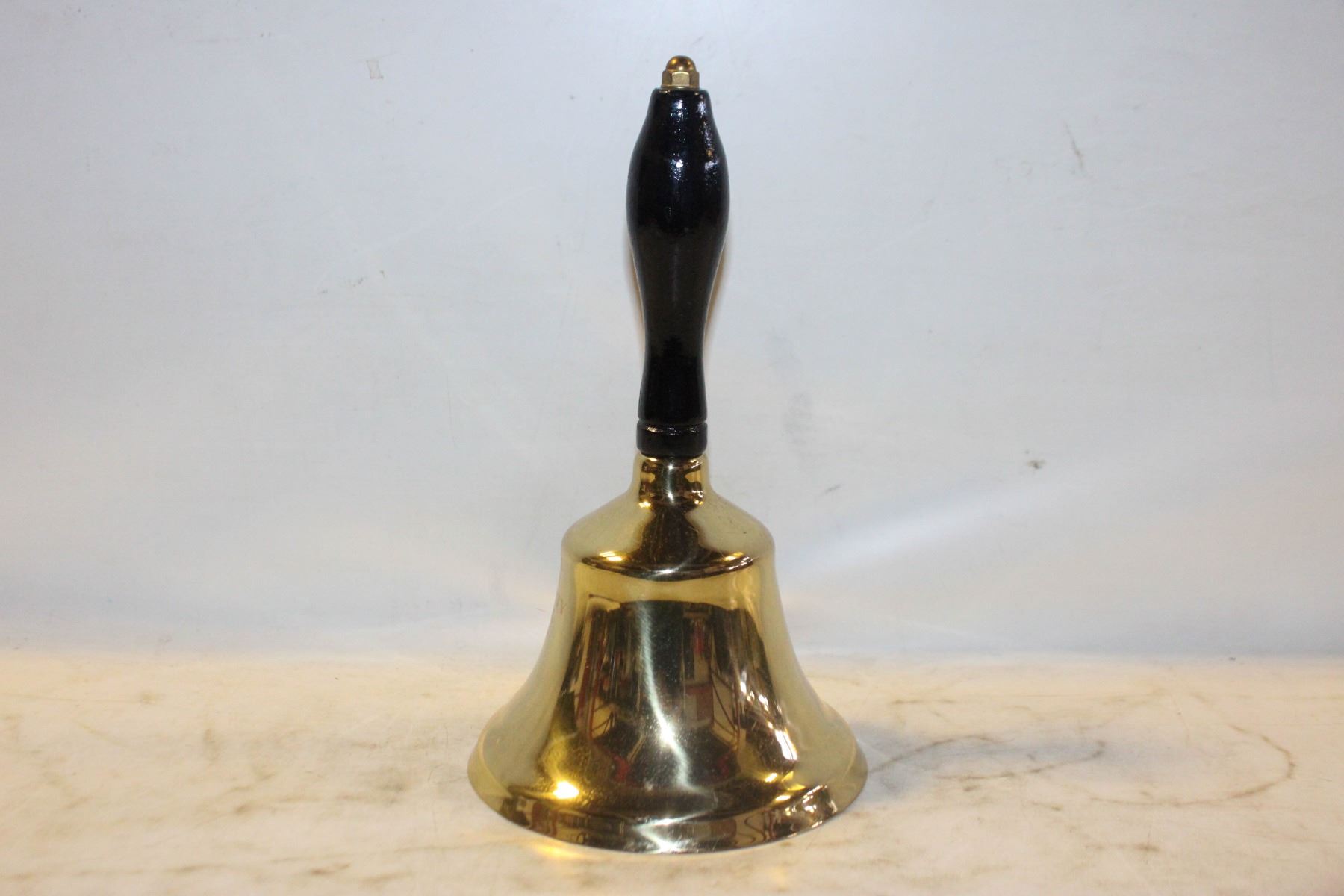 VINTAGE BRASS SCHOOL BELL WITH RINGER, 9"