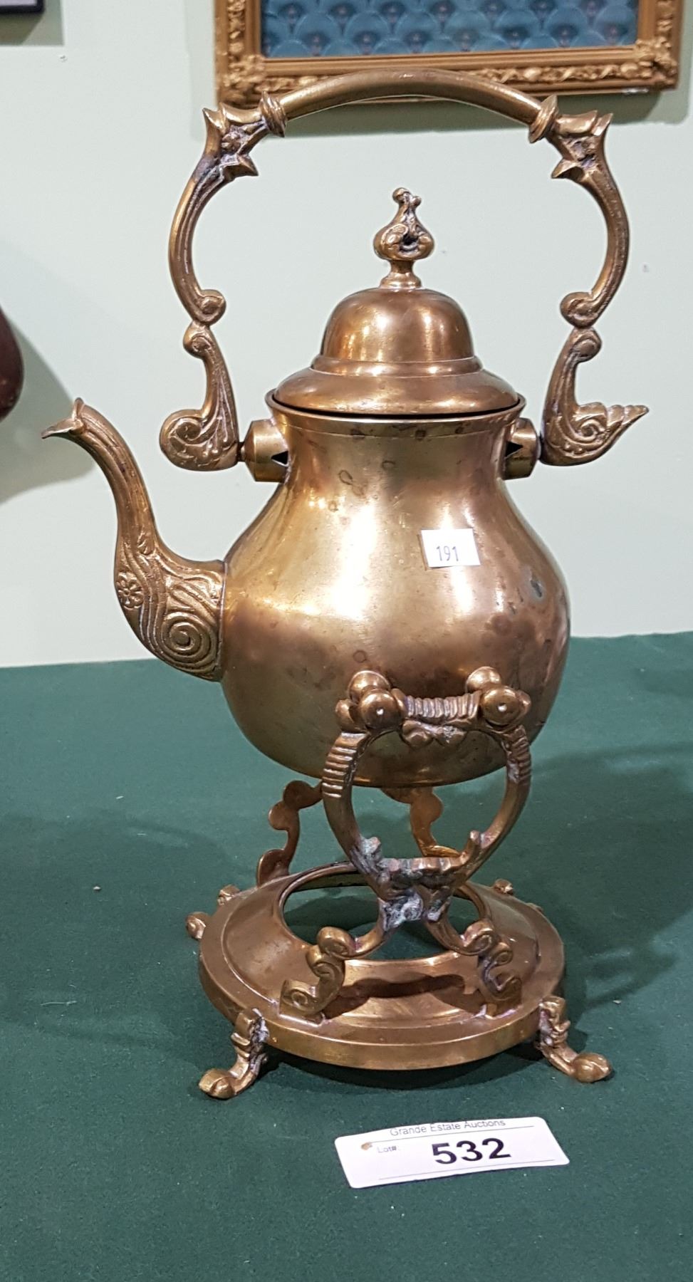 VINTAGE BRASS TEAPOT ON WARMING STAND