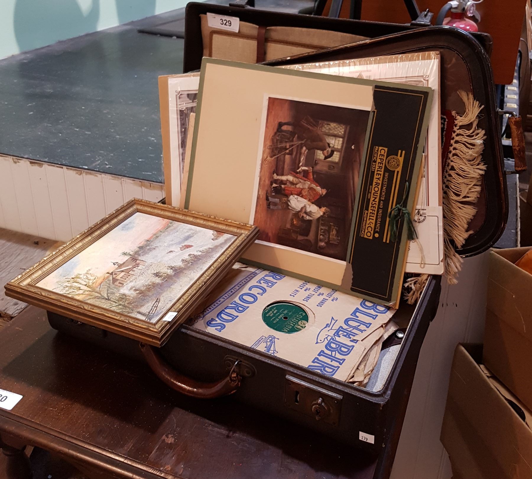 VINTAGE BRIEFCASE W/RECORDS, CALENDARS, TRAY ETC