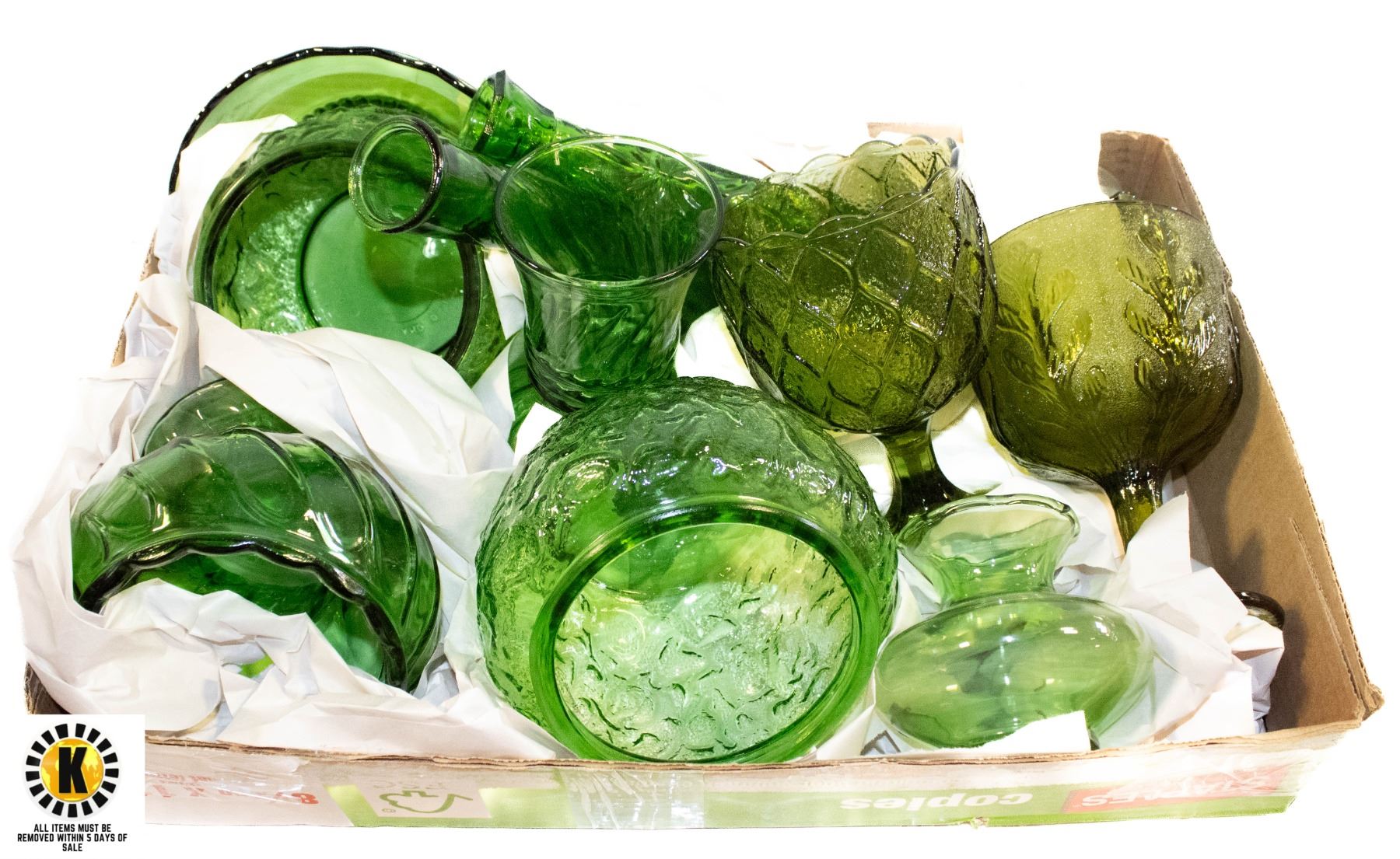 VINTAGE "BRODY" GLASS VASES- BOX LOT OF 11 ASST.