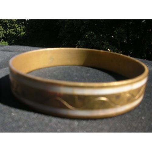 <tr><td>Title:VINTAGE BRONZE BANGLE BRACELET INLAID MOTHER OF</td></tr>