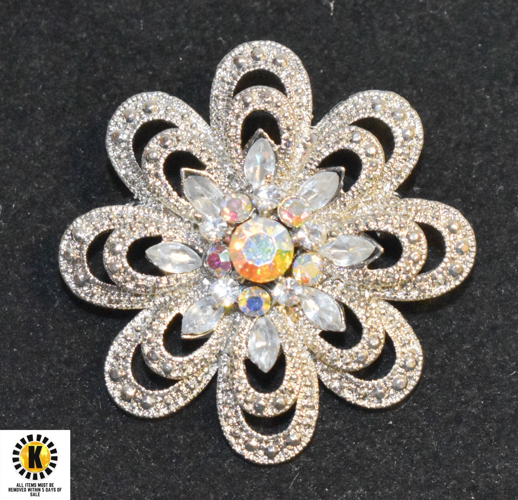 VINTAGE BROOCH WITH CRYSTAL AND IRIDESCENT STONES