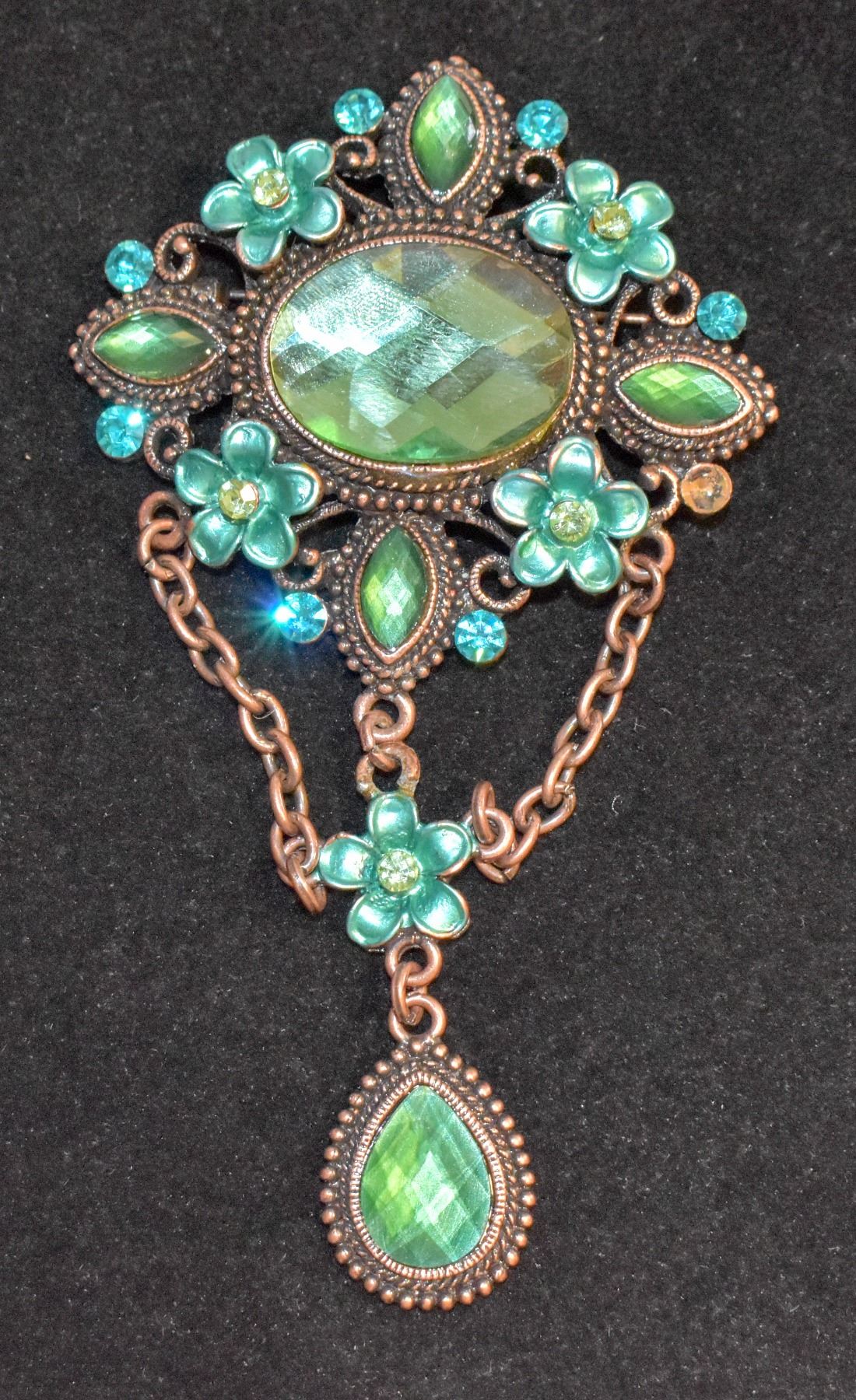 VINTAGE BROOCH WITH EMERALD AND AQUAMARINE STONES