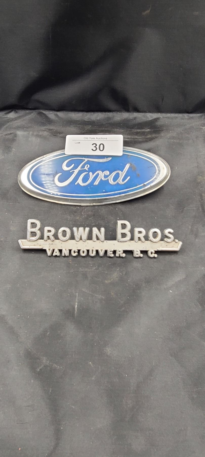 VINTAGE BROWN BROS. FORD CAR EMBLEM & FORD EMBLEM