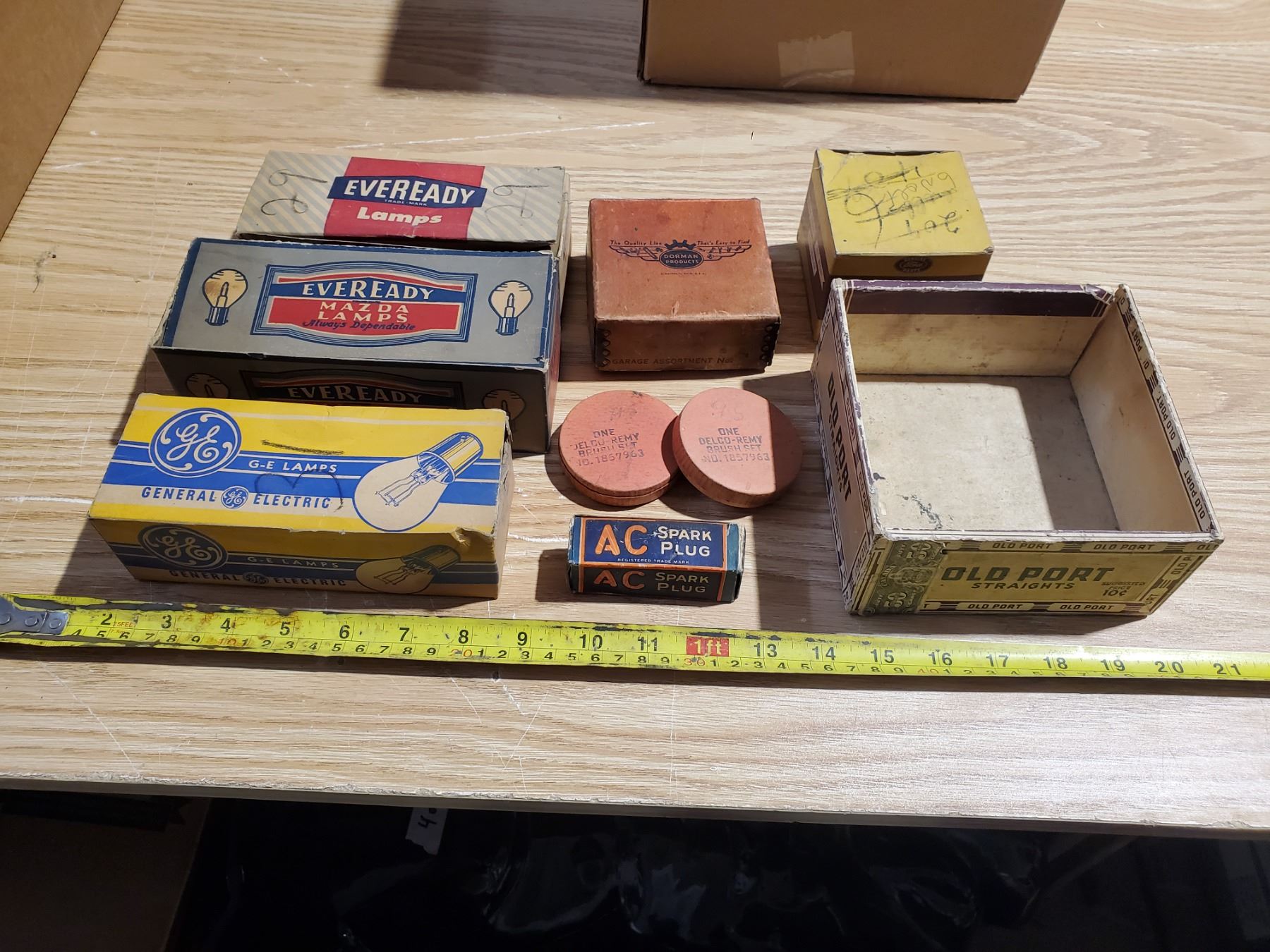 VINTAGE BULB BOXES, AUTOMOTIVE PARTS, CIGAR BOX