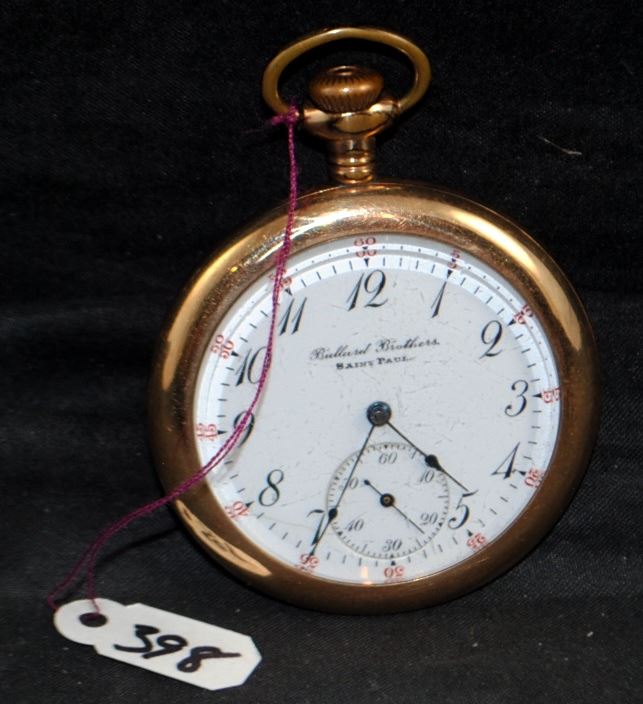 VINTAGE "BULLARD BROS - ST. PAUL" 17 JEWEL ILLINOIS POCKET WATCH - DOUBLE ROLLER, STEM SET, 10 SIZE, CIRCA 1919