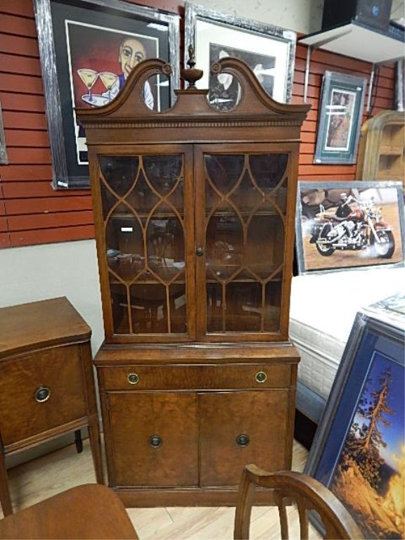 VINTAGE BURL WALNUT CHINA CABINET - HUNTLEY FURNITUR