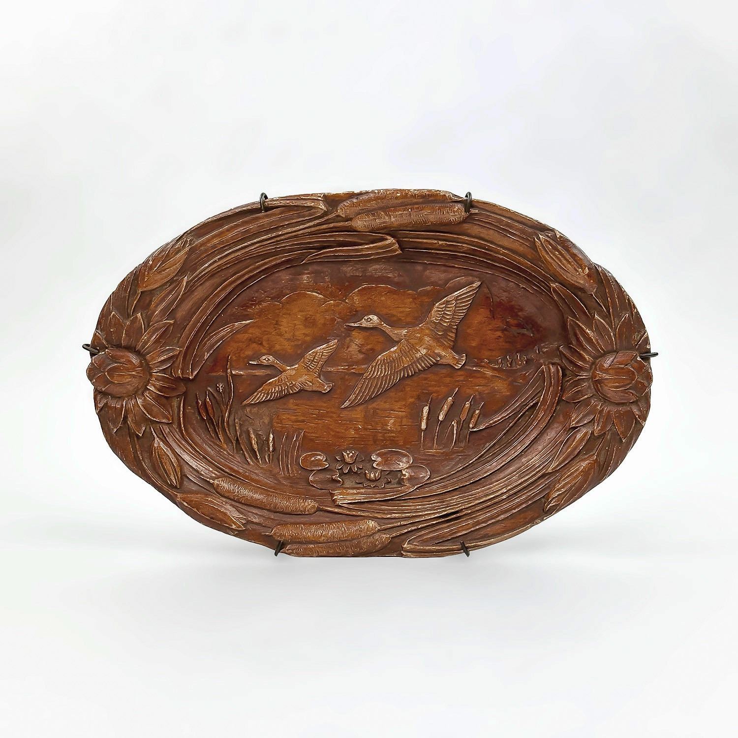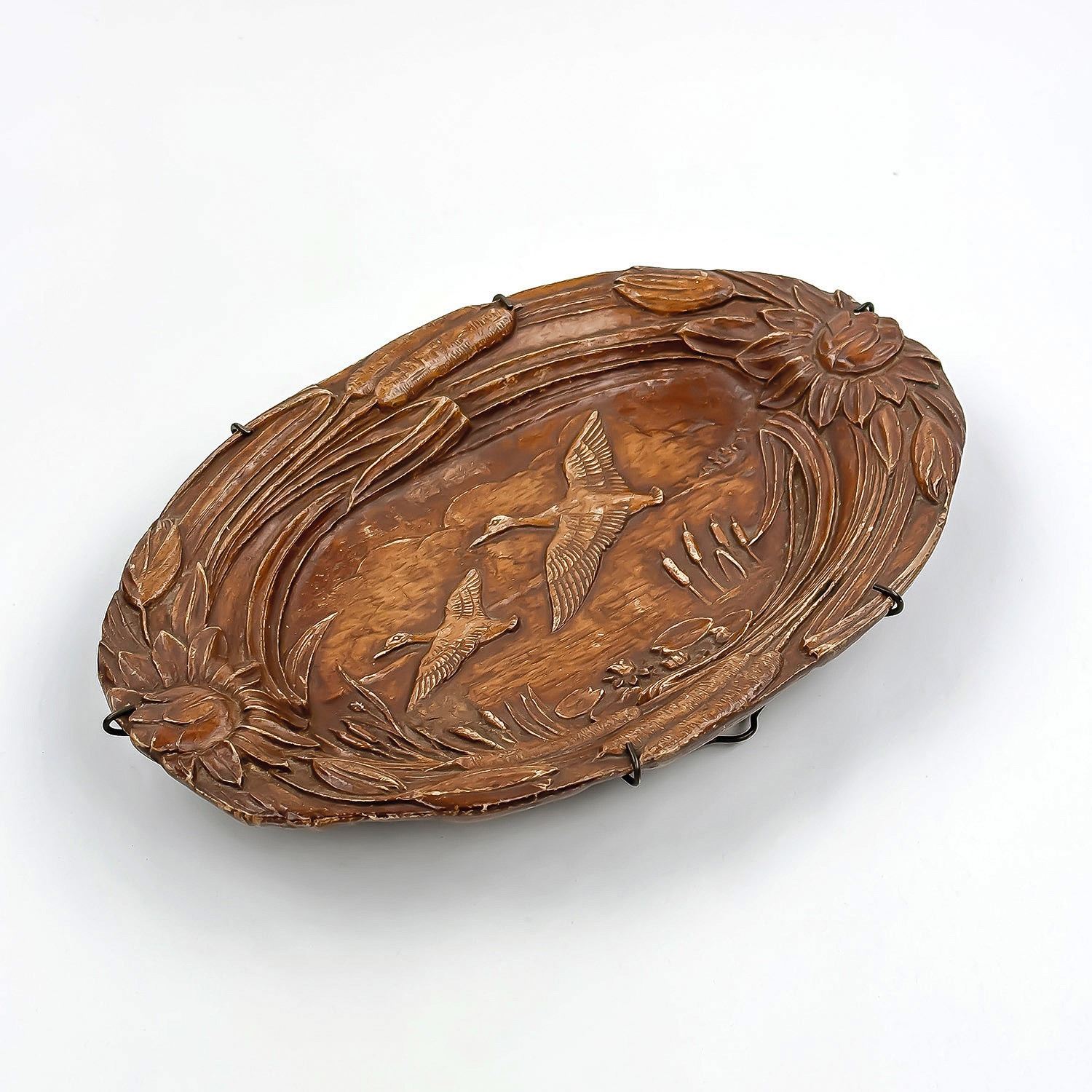 #8379 - BURWOOD DISH OR TRAY WITH WALL HANGER - HOME DECOR. BURWOOD PRODUCTS COMPANY. INJECTION MOLDED COMPOSITE WOOD. MEASURES: 10.75” (27.5 CM) LONG BY 7” (18 CM) WIDE AND SITS 1 3/8” (3.5 CM) HIGH